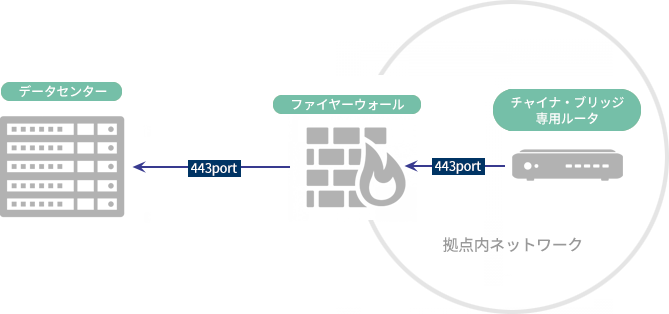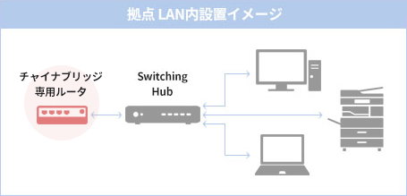 日本、および中国拠点内に専用VPNルーターを設置することで、それぞれの拠点のネットワーク内に高速、かつセキュアに相互アクセスができます。